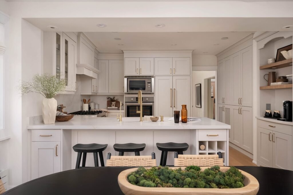 - Open shelving and custom cabinetry: Combine traditional wood finishes with modern design and functionality, offering both style and storage.